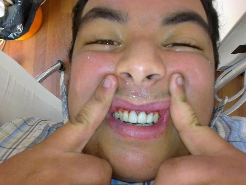 Je merkt wel dat we al wat langer in Nador zijn aangezien steeds meer mensen zich opdringen om ook behandeld te worden. Vandaag stonden er 25 kinderen op de behandellijst, maar na twee uur werken stonden er nog steeds 23 op de lijst, terwijl we er toch al 10 behandeld hadden??? Een stuk of 8 kinderen hadden zich er illegaal tussen geglipt. Gelukkig greep Suzanne in om de boel eerlijk te laten verlopen. Iedereen probeert zijn zusje, neefje etc. ertussen te proppen. Ik heb nog een gozer nieuwe voortanden gegeven omdat hij alleen zwarte stompjes had en hier erg mee gepest werd (zie foto voor en na ). Pier is trouwens na thuiskomst zwaar ziek geworden en ligt nu ziek op bed in Nederland. Beterschap Pier! Morgen werken we waarschijnlijk maar een halve dag, omdat iedereen redelijk stuk zit en we gehandicapten gaan behandelen wat altijd iets meer energie vergt .